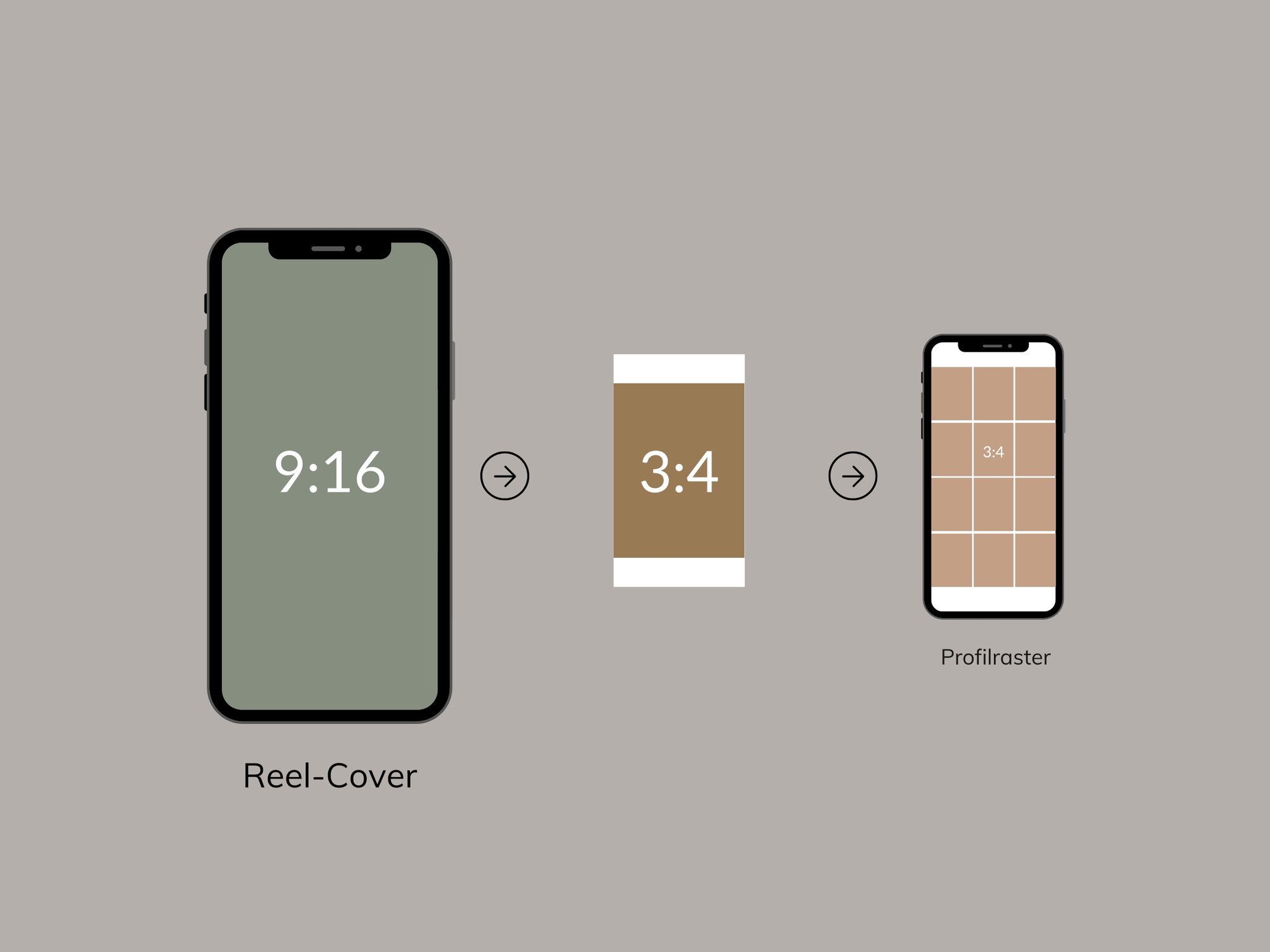 - Im Grid (Profilraster) werden alle Formate automatisch auf 3:4 zugeschnitten – auch die 9:16-Reel-Cover.